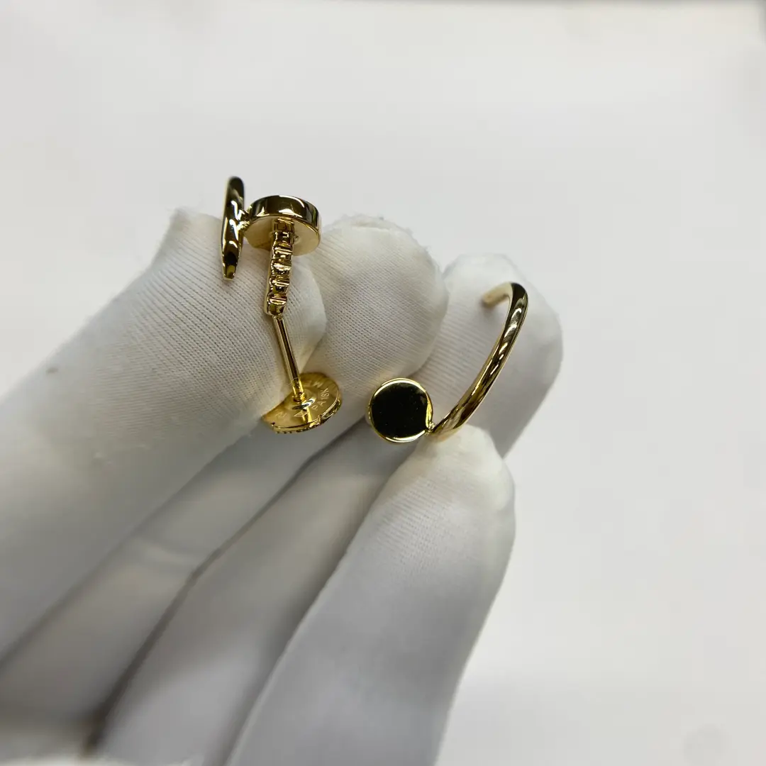These 18K Yellow Gold Cartier Nail Hoop Earrings (Small Model) are handcrafted by our experienced jewelry artisans and produced made to order, ensuring every piece is created using the latest craftsmanship techniques. We work exclusively with solid 18K gold (750/1000), offering both durability and intrinsic material value. Each pair is carefully finished and comes with a certificate of authenticity available in both Chinese and English. The earrings feature a sleek nail-inspired design with a width of 1.8 mm and an outside diameter of 16.3 mm, making them a refined and versatile choice for everyday wear or as a thoughtful gift.