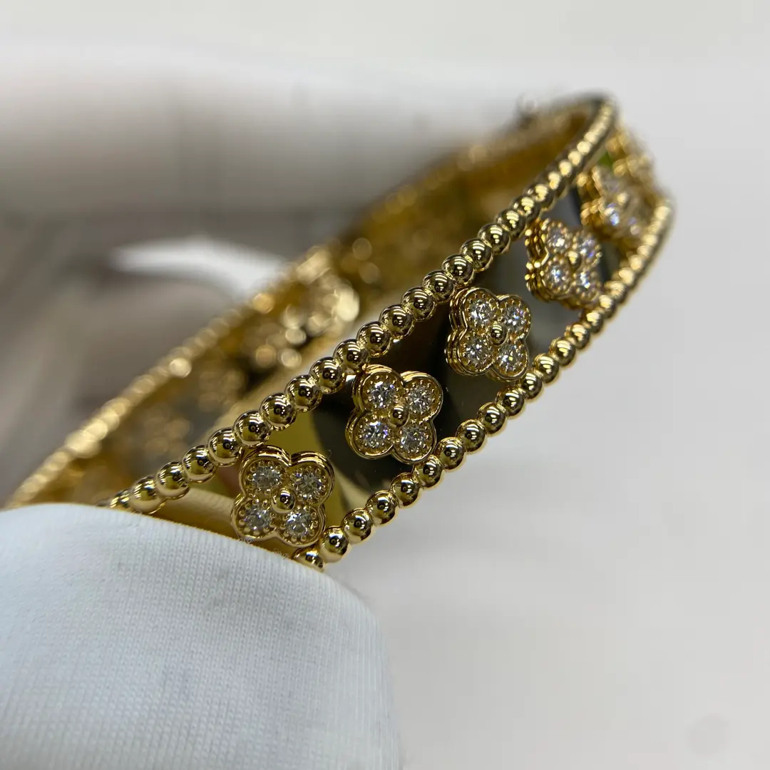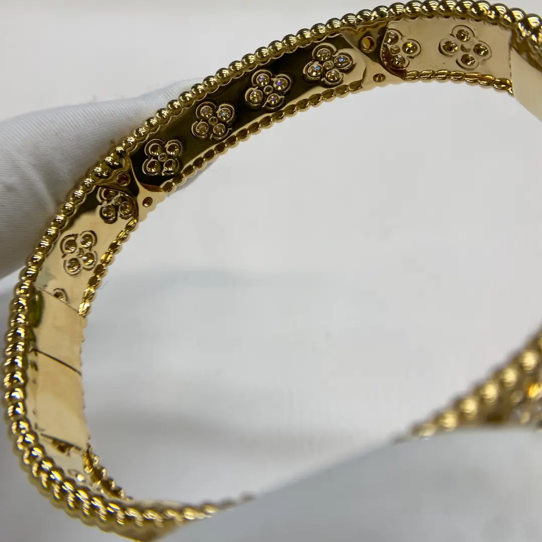 What’s difference between this Van cleef perlee clover diamond bracelet with authentic yellow gold van cleef perlee clover bracelet ?
